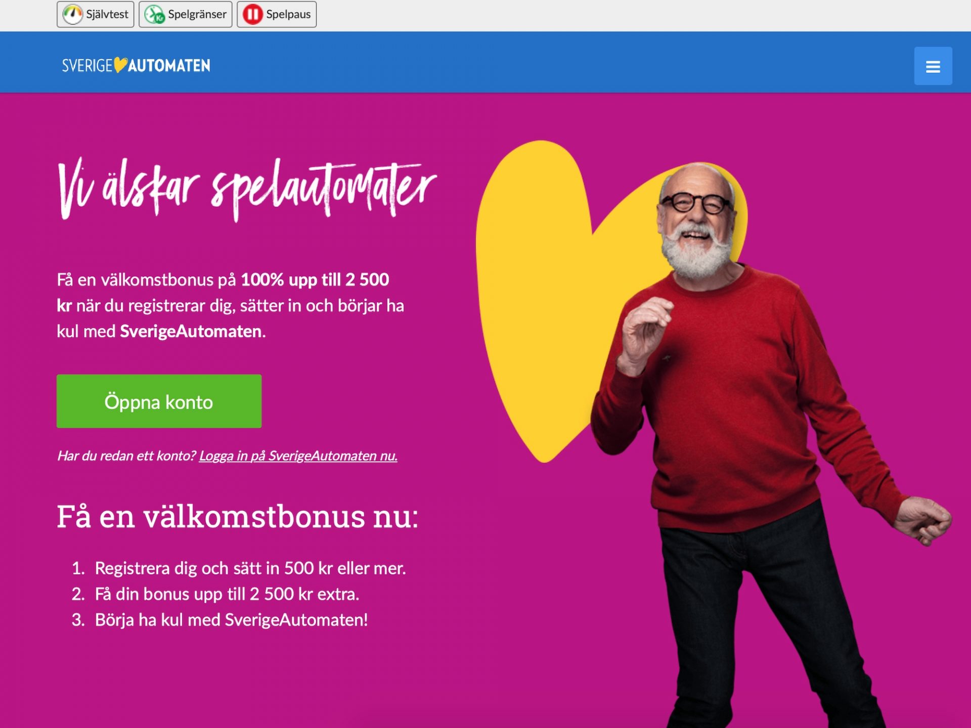 Sverigeautomaten snålar inte med sin välkomstbonus för nya spelare. Du får en rejäl extra slant att spela med. Notera bara att det inte räcker med en ”vanlig” minimiinsättning.